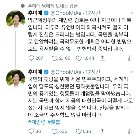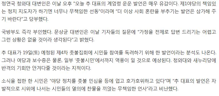 '계엄령은 팩트!' 추미애 의원 계엄령 발언의 전말